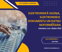 ✅ Mērķis: Iegūt un papildināt praktiskas prasmes elektroniskajā saziņā un elektronisko dokumentu un datņu noformēšanā ✅ Mērķauditorija: Iestāžu, uzņēmumu vadītāji, struktūrvienību vadītāji, lietveži, biroju administratori, sekretāri, visi kuriem ir svarīgi, lai: ⭕ elektroniskā saziņa būtu korekta, tiktu ievērota tīkla etiķete, lai neiestātos riski, kuri var apdraudēt rakstītāju un/ vai iestādi, uzņēmumu; ⭕ izstrādātie elektroniskie dokumenti būtu sistematizēti lietās (datnēs) ar atbilstošiem nosaukumiem un, lai visi darbinieki to darītu vienveidīgi. Lasīt vairāk ... |