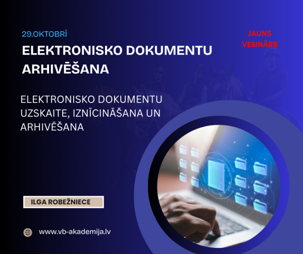 29.oktobrī vebinārs "ELEKTRONISKO DOKUMENTU ARHIVĒŠANA. ELEKTRONISKO DOKUMENTU UZSKAITE, IZNĪCINĀŠANA UN ARHIVĒŠANA." 23.10.2025