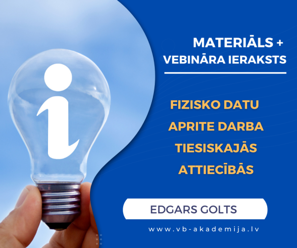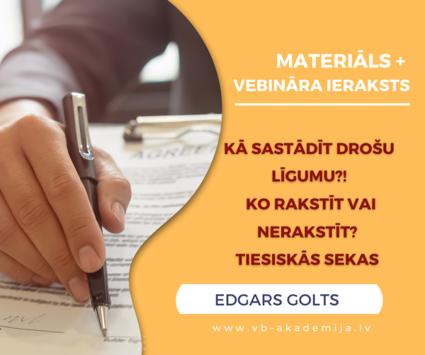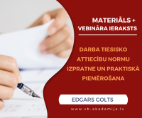 Lektors un materiāla autors: EDGARS GOLTS, Dr.iur.cand., zvērināts advokāts, Biznesa Augstskola "Turība" Juridiskā fakultātes un Baltijas Starptautiskās Akadēmijas Juridiskās fakultātes vieslektors Lasīt vairāk ... |