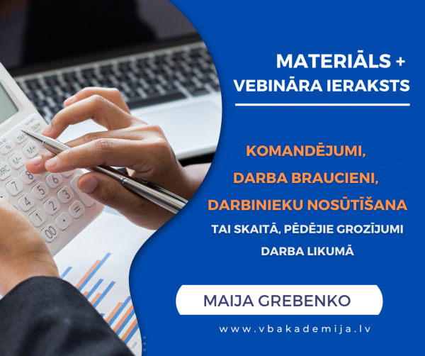 Lektore un materiāla autore: Mg.sci.oec. MAIJA GREBENKO, praktiskās grāmatvedības speciāliste, žurnāla Bilance rakstu ilggadējā autore, grāmatas Darba likums un grāmatvedība autore. Lasīt vairāk ... |